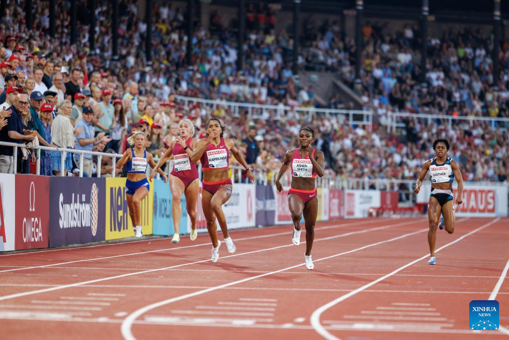 Britain's Dina Asher-Smith (2nd R) competes during women's 200m at the Diamond League athletics meeting in Stockholm, Sweden, June 30, 2022. (Photo by Wei Xuechao/Xinhua)
