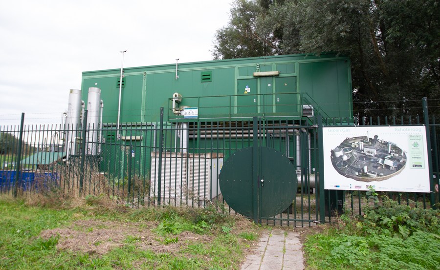 Photo taken on Oct. 16, 2021 shows a green gas installation in Haarlem, the Netherlands. (Photo by Sylvia Lederer/Xinhua)