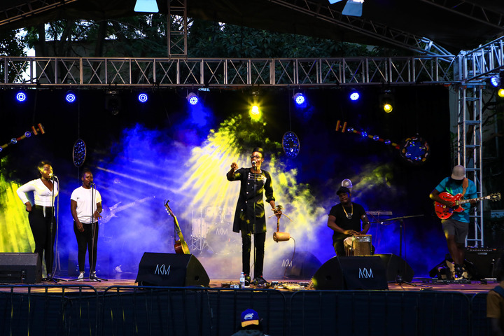 An artist performs on stage with his band during a concert to mark World Music Day at Uganda National Cultural Center in Kampala, Uganda, on June 20, 2022. (Photo by Hajarah Nalwadda/Xinhua)
