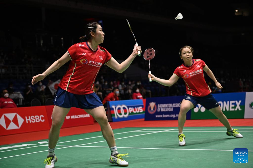 China's Chen Qingchen/Jia Yifan (L) compete during the women's doubles round of 16 match against their teammates Liu Xuanxuan/Xia Yuting at Malaysia Masters 2022 in Kuala Lumpur, Malaysia, July 7, 2022. (Photo by Chong Voon Chung/Xinhua)