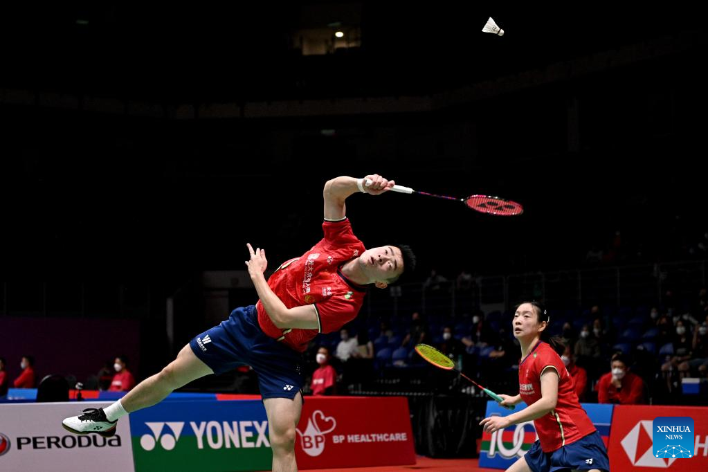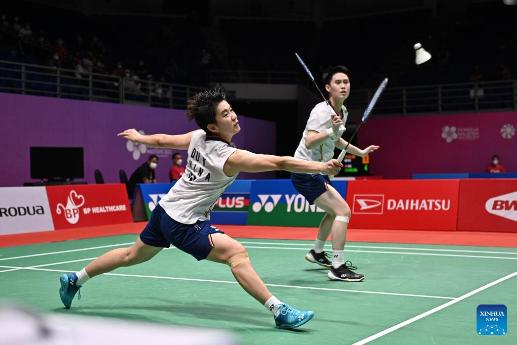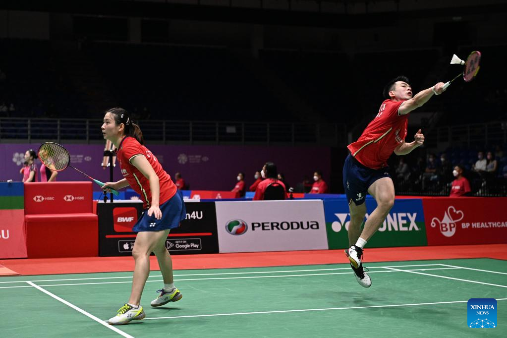 China's Zheng Siwei(R)/Huang Yaqiong compete during the mixed doubles round of 16 match against Malaysia's Chan Peng Soon/Cheah Yee See at in Kuala Lumpur, Malaysia, July 7, 2022. (Photo by Chong Voon Chung/Xinhua)
