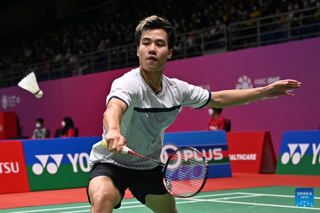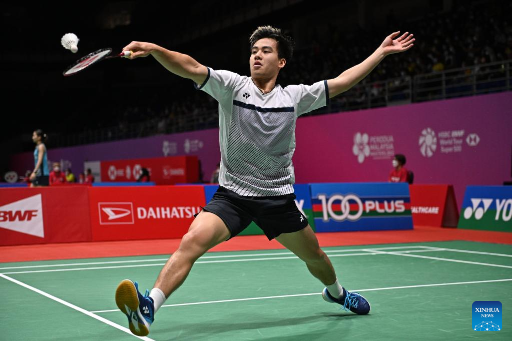 China's Lu Guangzu hits a return during the men's singles round of 16 match against Ireland's Nhat Nguyen at Malaysia Masters 2022 in Kuala Lumpur, Malaysia, July 7, 2022. (Photo by Chong Voon Chung/Xinhua)