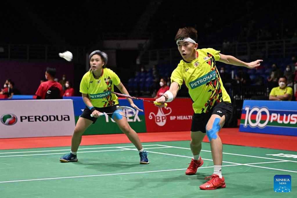 Malaysia's Chan Peng Soon/Cheah Yee See(R) compete during the mixed doubles round of 16 match against China's Zheng Siwei/Huang Yaqiong at Malaysia Masters 2022 in Kuala Lumpur, Malaysia, July 7, 2022. (Photo by Chong Voon Chung/Xinhua)