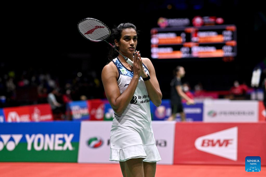 India's Pusarla V.Sindhu reacts after winning the women's singles round of 16 match against China's Zhang Yiman at Malaysia Masters 2022 in Kuala Lumpur, Malaysia, July 7, 2022. (Photo by Chong Voon Chung/Xinhua)