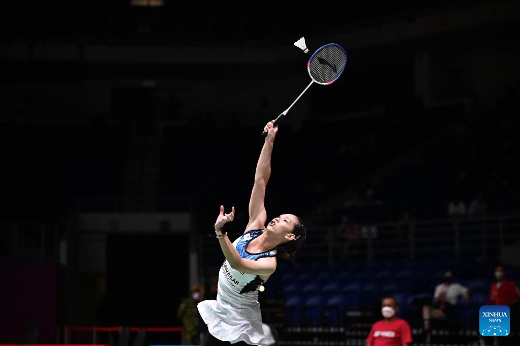 Thailand's Pornpawee Chochuwong competes during the women's singles round of 16 match against China's Chen Yufei at Malaysia Masters 2022 in Kuala Lumpur, Malaysia, July 7, 2022. (Photo by Chong Voon Chung/Xinhua)