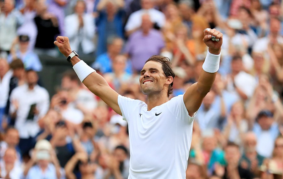 LONDON, July 6 (Xinhua) -- Rafael Nadal refused to surrender to his injury and hung on to hold off American Taylor Fritz in five sets, reaching the men's singles semifinals at the Wimbledon Championships on Wednesday.