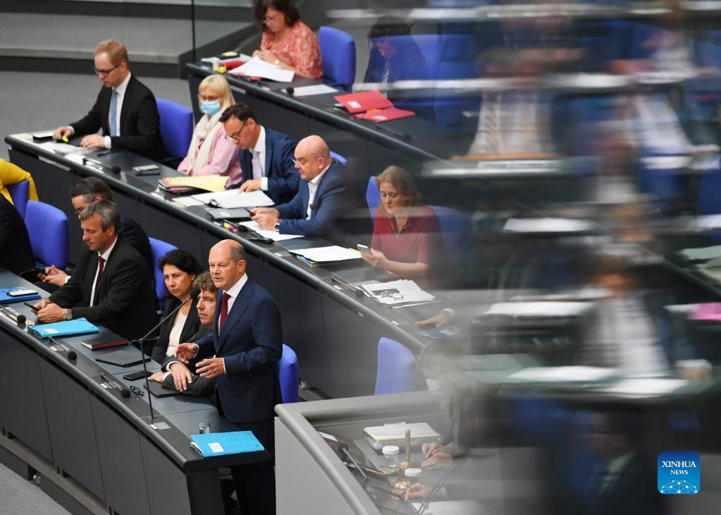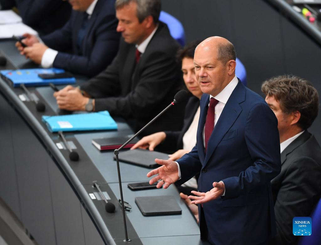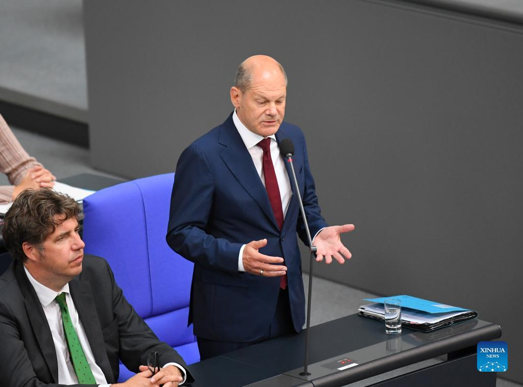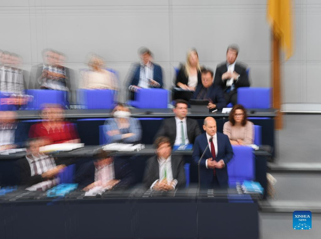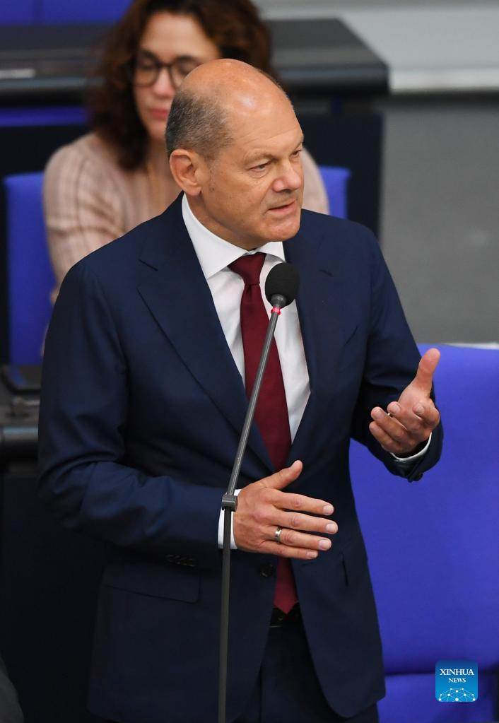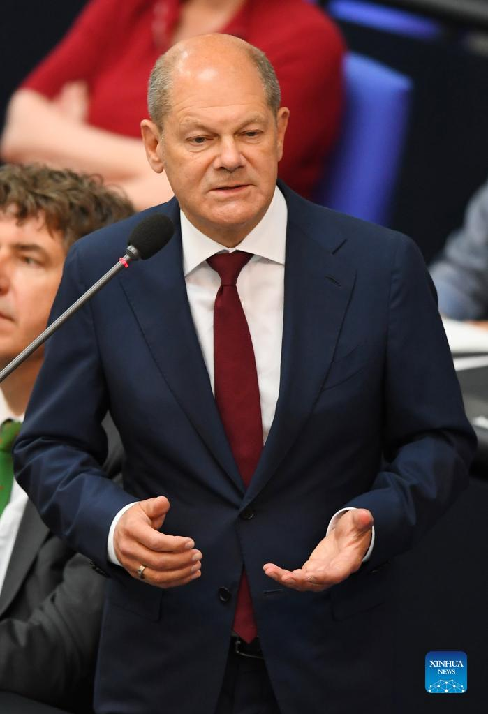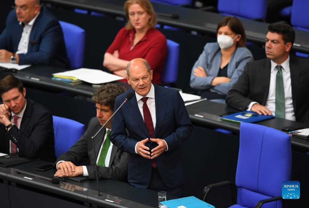 German Chancellor Olaf Scholz attends a question session of the Bundestag in Berlin, capital of Germany, July 6, 2022. (Xinhua/Ren Pengfei)