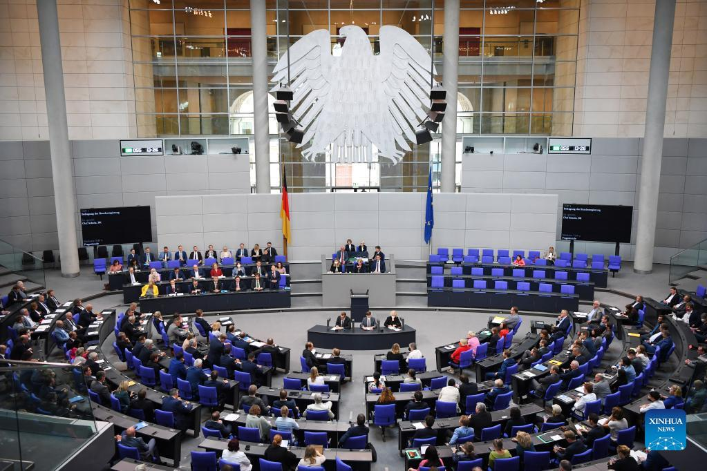 Photo taken on July 6, 2022 shows a question session of the Bundestag in Berlin, capital of Germany. (Xinhua/Ren Pengfei)