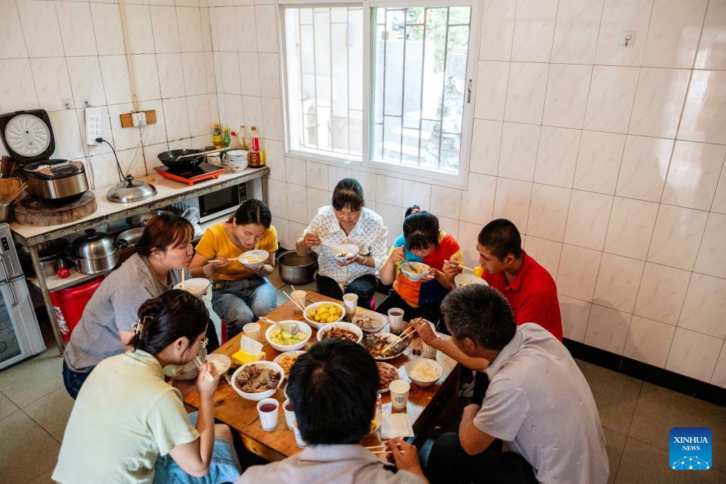 Cao Liqiong's family has dinner together in Wangjiatan Village of Caopu Township in Anning, southwest China's Yunnan Province, May 20, 2022. (Xinhua/Cao Mengyao)
