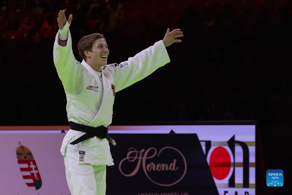 Hungary's Reka Rupp celebrates her victory after the Women's 52kg final against Italy's Giulia Carna at the IJF Grand Slam Hungary 2022 in Budapest, Hungary on July 8, 2022. (Photo by Attila Volgyi/Xinhua)