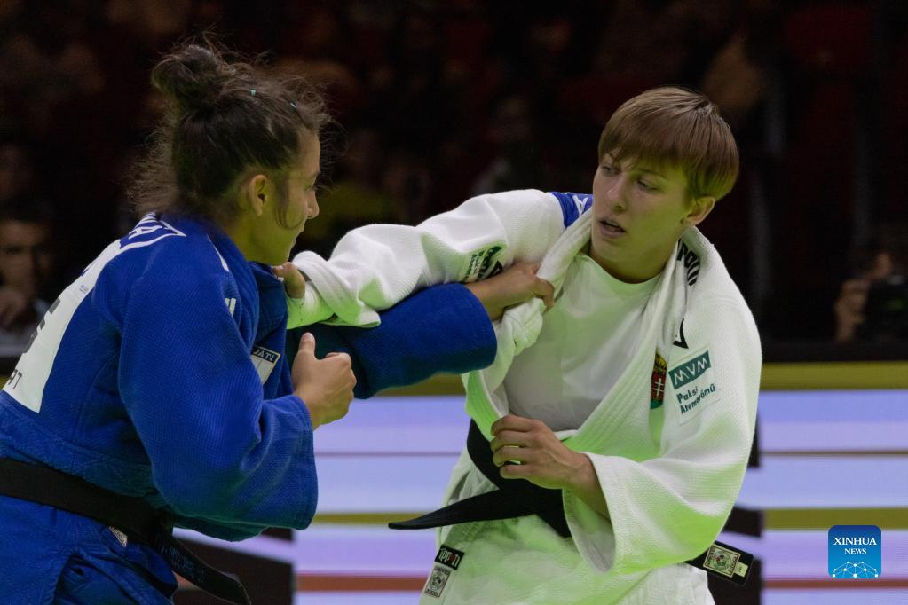 Hungary's Reka Rupp (R) and Italy's Giulia Carna compete during the Women's 52kg final at the IJF Grand Slam Hungary 2022 in Budapest, Hungary on July 8, 2022. (Photo by Attila Volgyi/Xinhua)