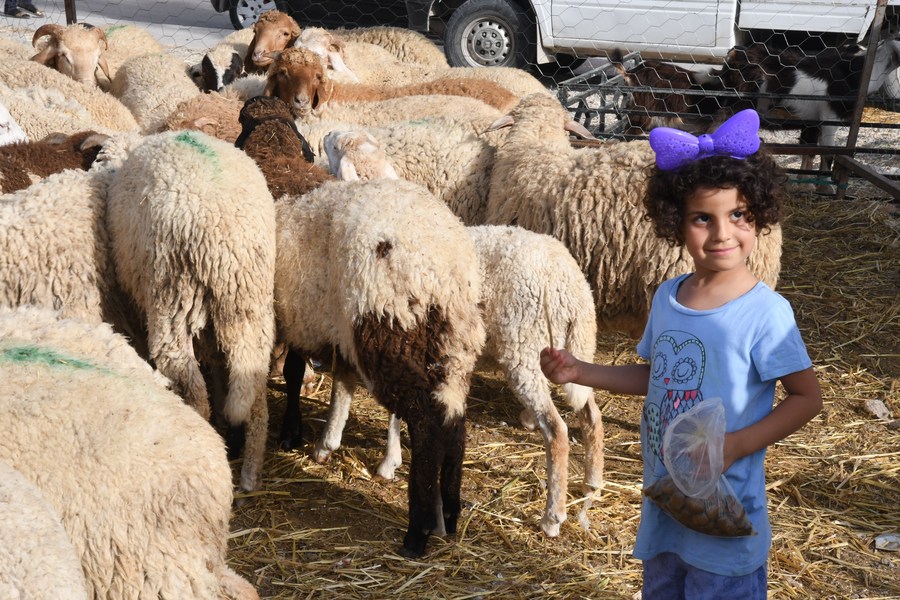 A girl stands next to a herd of sheep at a livestock market in Tunis, Tunisia on June 29, 2022. (Photo by Adel Ezzine/Xinhua)