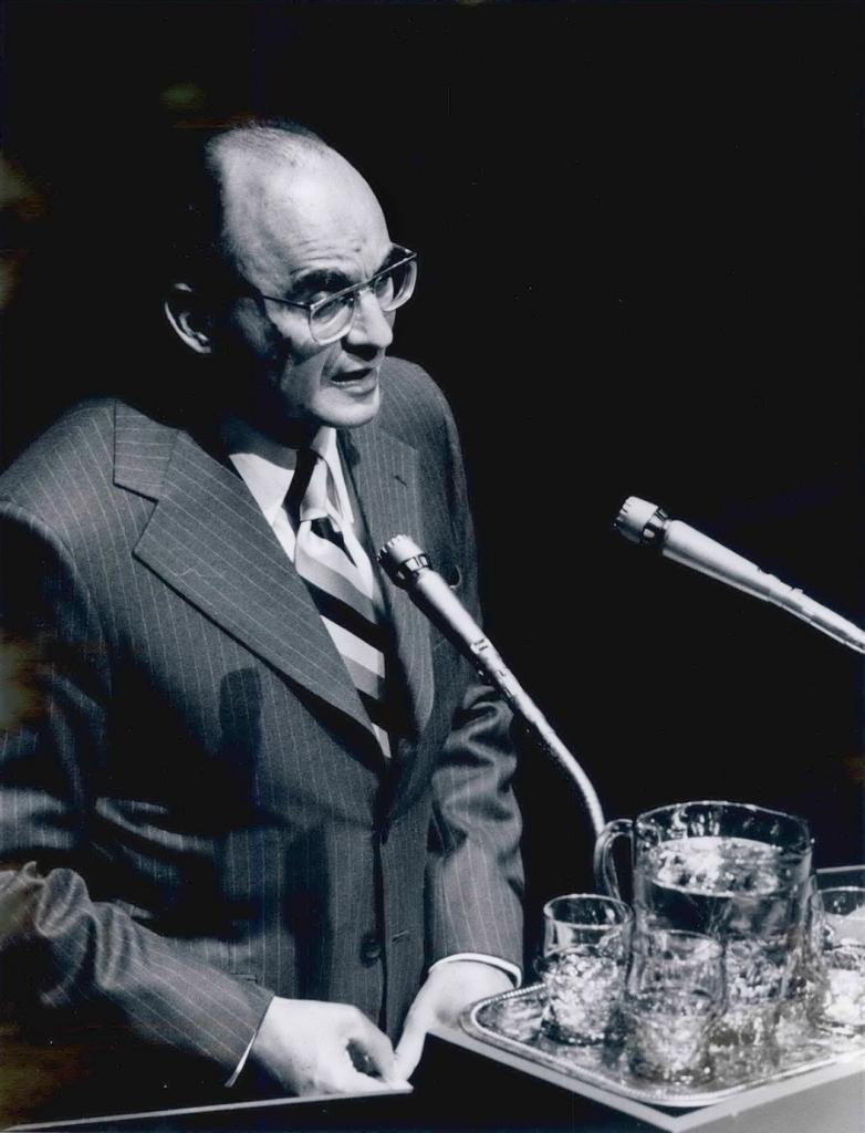 Image provided by ZUMAPRESS shows then Mexican President Luis Echeverria Alvarez delivering a speech in Vancouver, Canada, on May 5, 1976. The former President of Mexico died on July 8, 2022 at the age of 100 in his home in Cuernavaca, capital city of Morelos state, Mexico. (Xinhua/Keystone Press Agency/ZUMAPRESS)