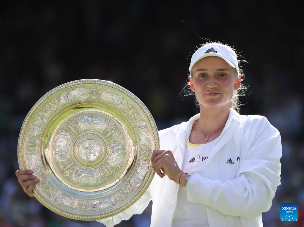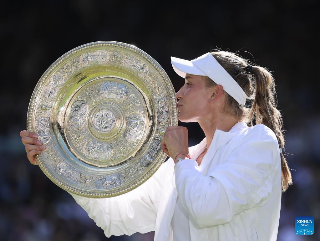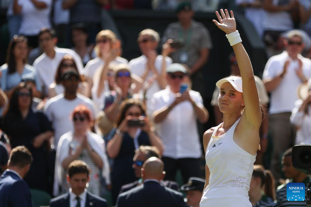 LONDON, July 9 (Xinhua) -- Kazakhstan's Elena Rybakina came from behind to defeat Tunisian third seed Ons Jabeur, winning the women's singles title at the Wimbledon Championships on Saturday.