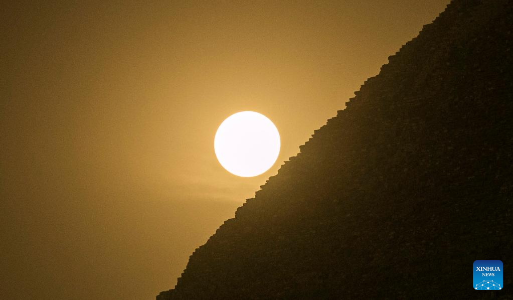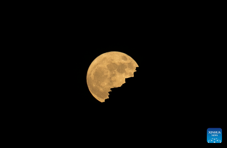 A supermoon is seen from the Great Pyramid of Giza, Egypt, July 13, 2022. (Xinhua/Sui Xiankai)