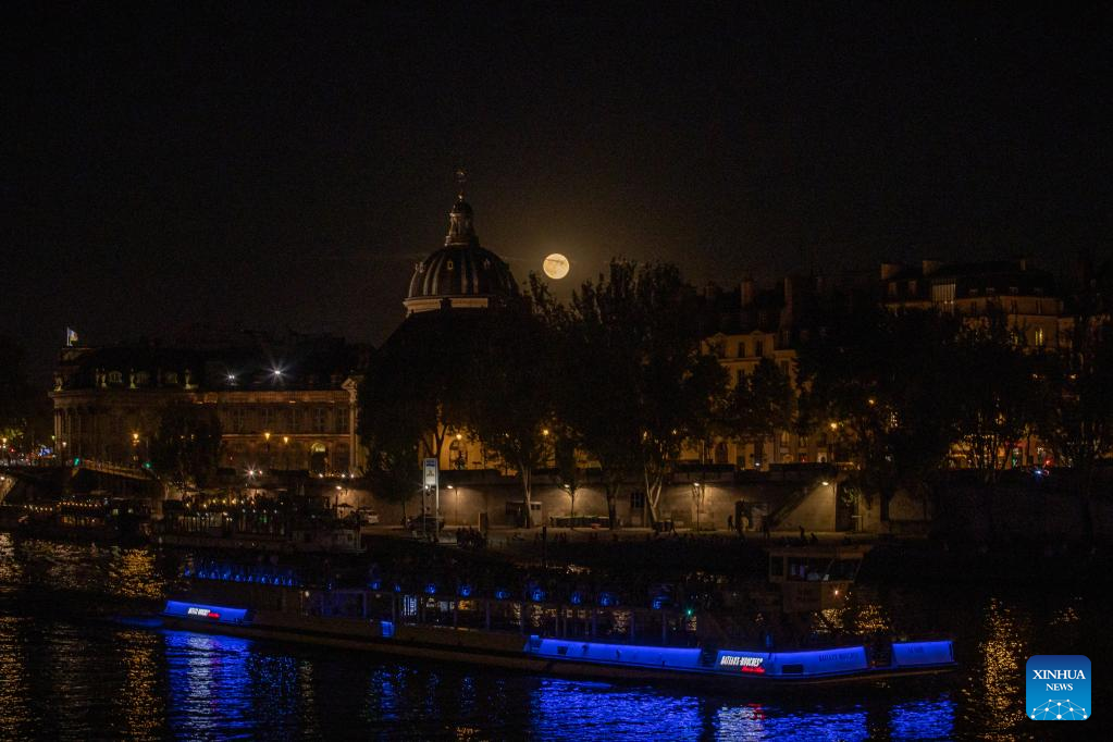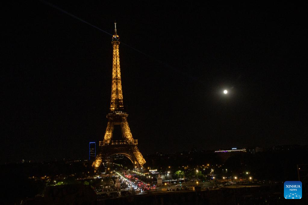 A supermoon is seen in the sky in Paris, France, on July 13, 2022. (Photo by Aurelien Morissard/Xinhua)