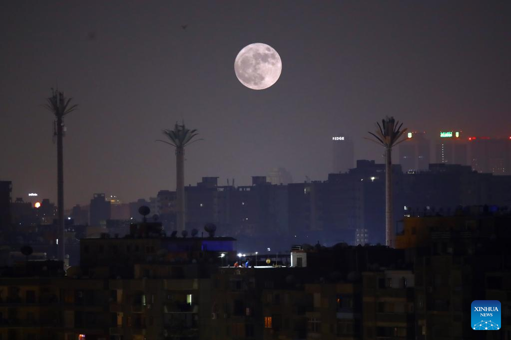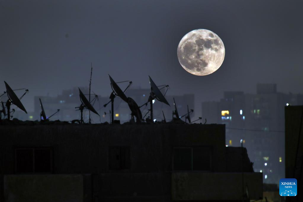 A supermoon is seen over Cairo, Egypt, July 13, 2022. (Xinhua/Ahmed Gomaa)