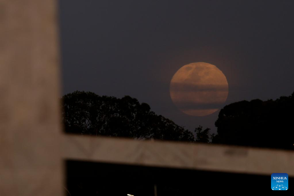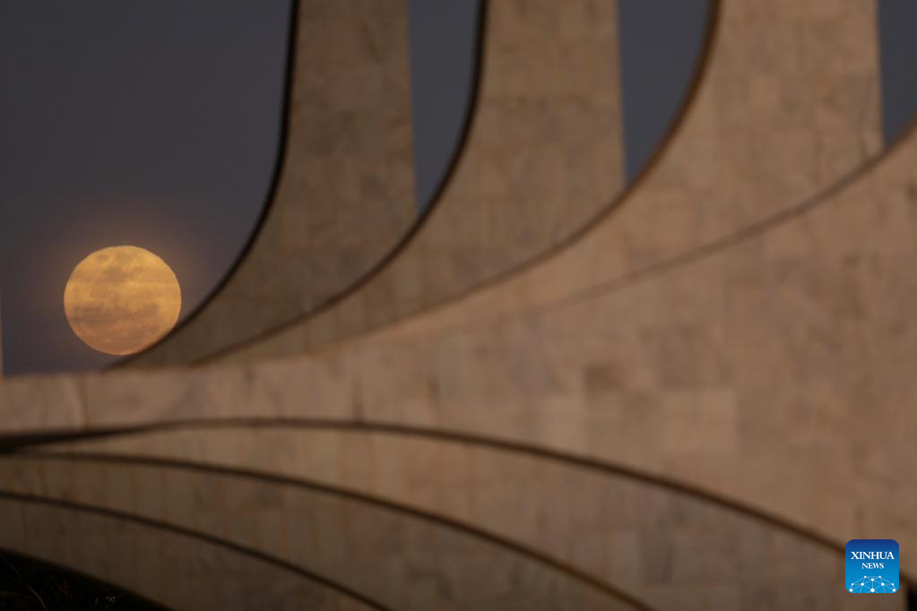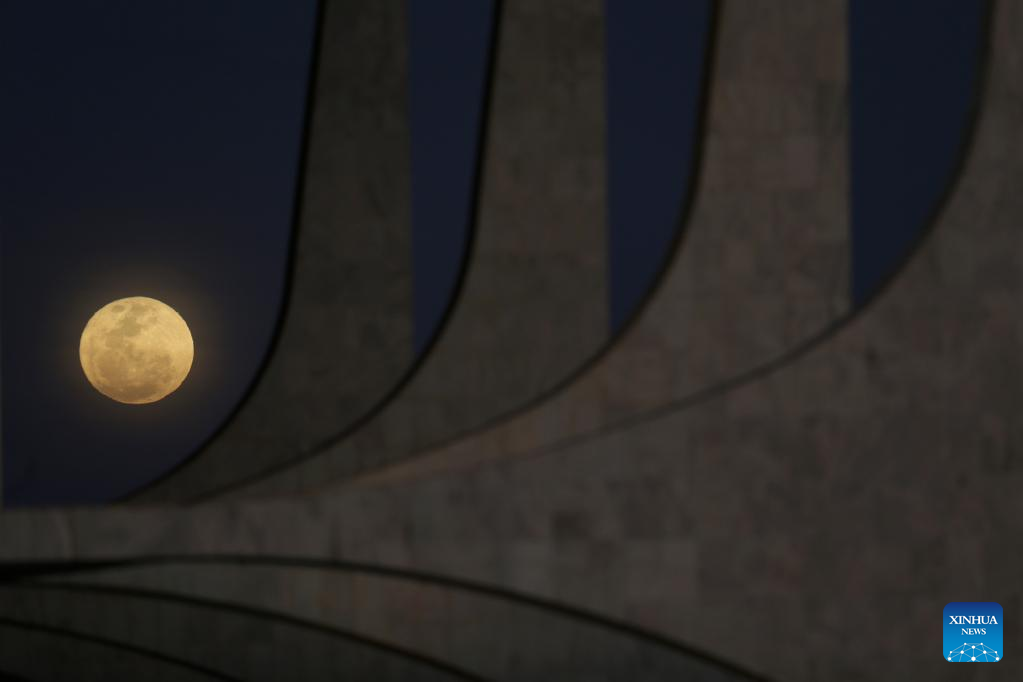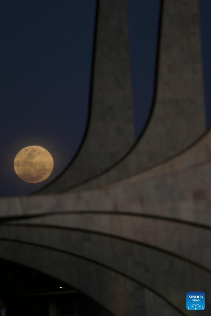 A supermoon is seen from the Juscelino Kubitschek memorial in Brasilia, Brazil, July 13, 2022. (Photo by Lucio Tavora/Xinhua)