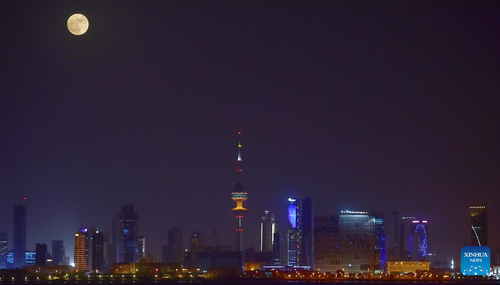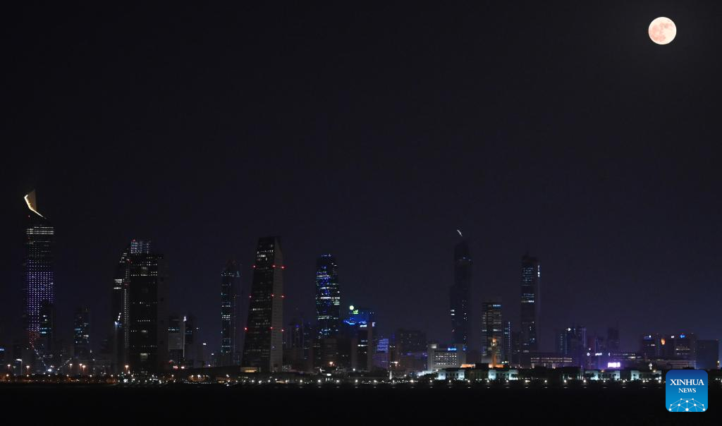 Photo taken on July 13, 2022 shows a supermoon over Kuwait City, Kuwait. (Xinhua/Yin Ke)
