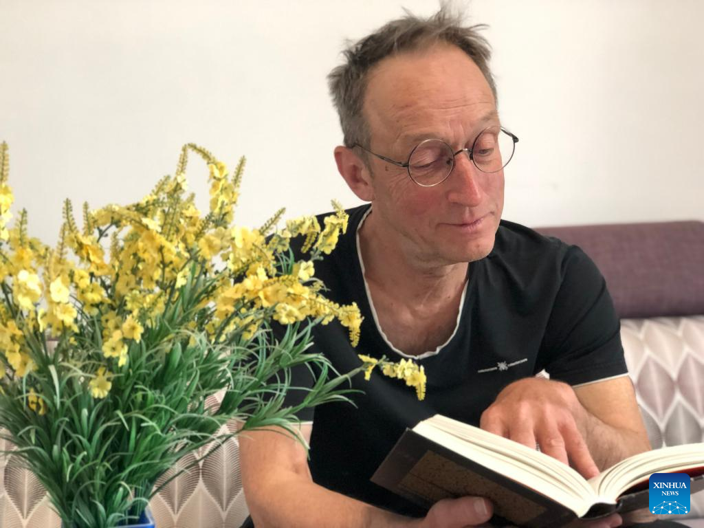 Ulrich Forderer reads a book at Lanzhou University in Lanzhou, northwest China's Gansu Province, May 18, 2022. (Xinhua/Zhang Wenjing)
