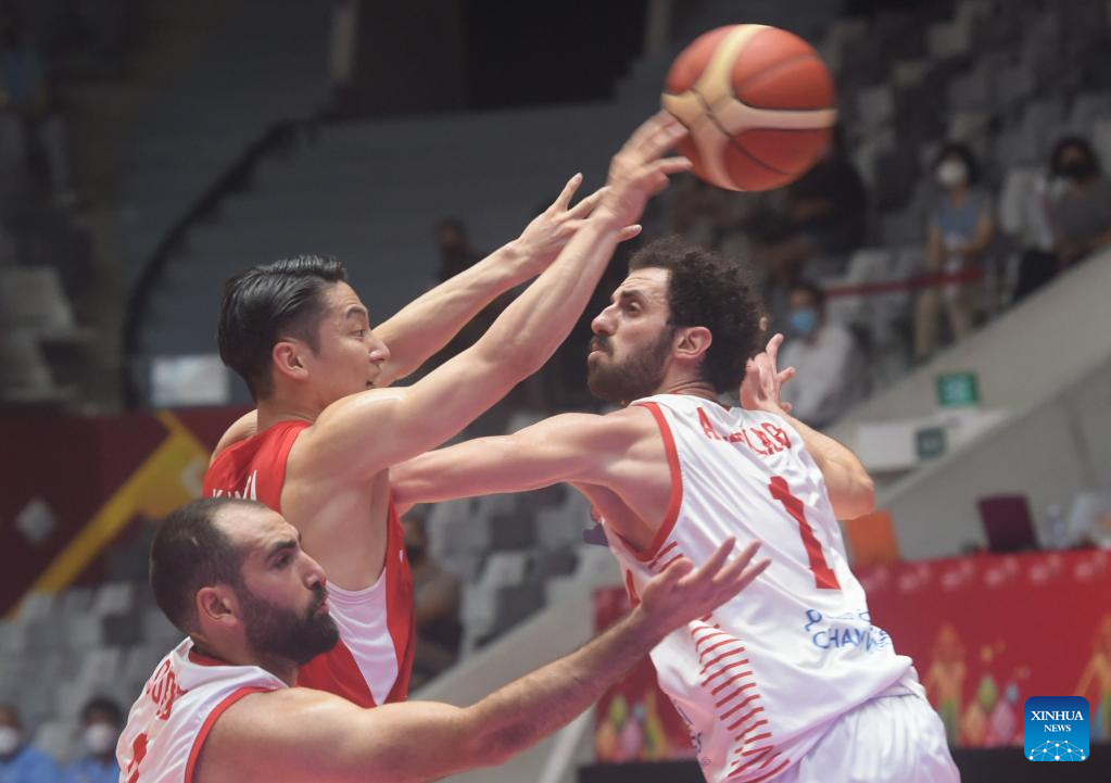 Isshak Oubeid (C) of Syria passes the ball during a Group D match against Japan at the FIBA Asia Cup 2022 in Jakarta, Indonesia, July 15, 2022. (Xinhua/Zulkarnain)