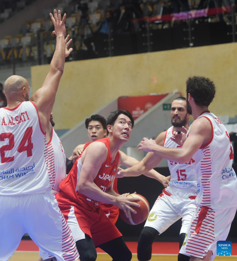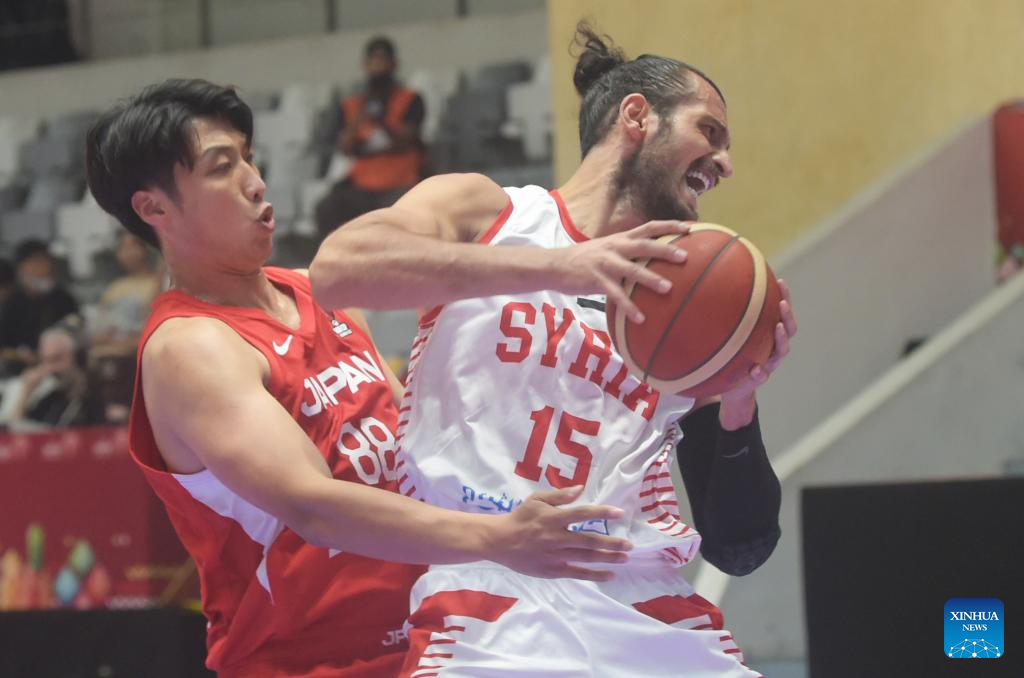 Hani Adribe (R) of Syria competes during a Group D match against Japan at the FIBA Asia Cup 2022 in Jakarta, Indonesia, July 15, 2022. (Xinhua/Zulkarnain)
