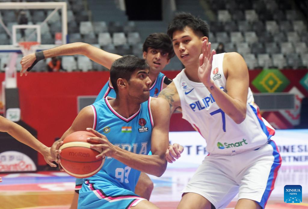 Prashant Singh Rawat (L) of India competes during a Group D match between the Philippines and India of the FIBA Asia Cup 2022 in Jakarta, Indonesia, July 15, 2022. (Xinhua/Zulkarnain)