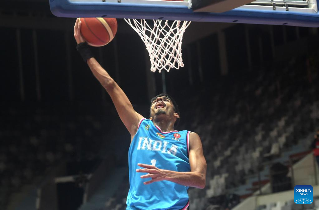 Sahaij Pratap Singh Sekhon of India goes up for a basket during a Group D match between the Philippines and India of the FIBA Asia Cup 2022 in Jakarta, Indonesia, July 15, 2022. (Xinhua/Zulkarnain)