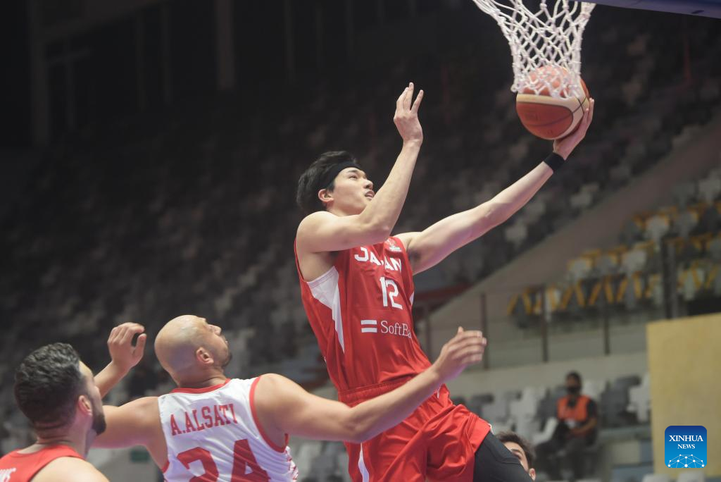 Watanabe Yuta (R) of Japan goes up for a lay-up during a Group D match against Syria at the FIBA Asia Cup 2022 in Jakarta, Indonesia, July 15, 2022. (Xinhua/Zulkarnain)