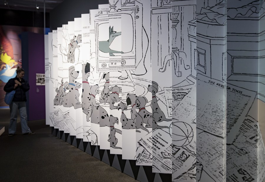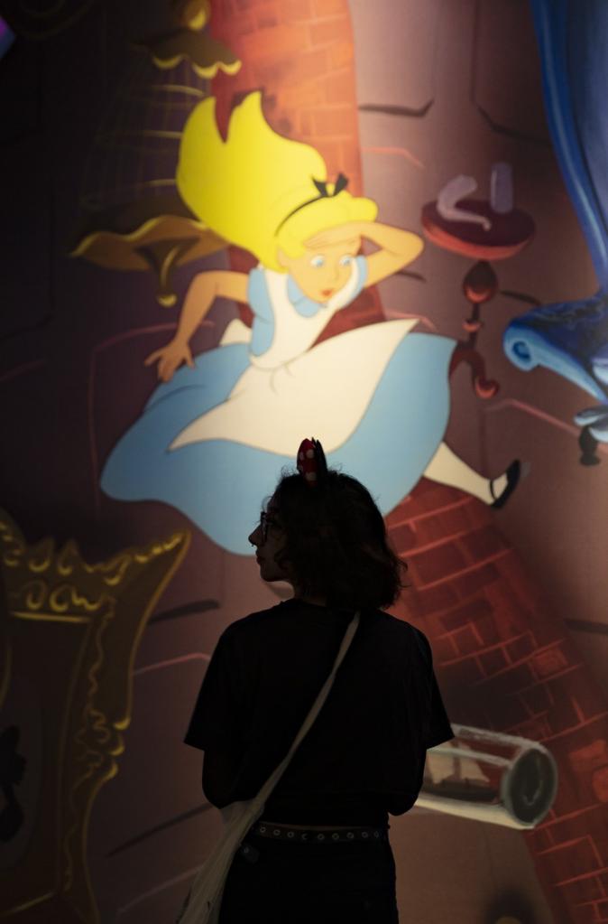A woman visits Disney: The Magic of Animation at Queensland Museum in Brisbane, Australia, on July 13, 2022. (Xinhua/Bai Xuefei)