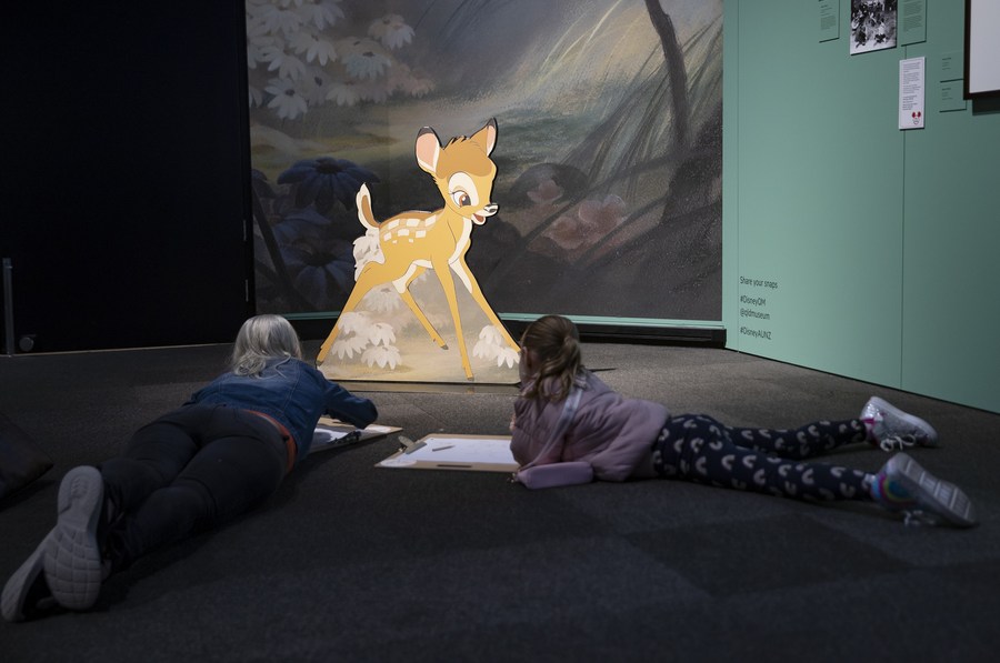 People visit Disney: The Magic of Animation at Queensland Museum in Brisbane, Australia, on July 13, 2022. (Xinhua/Bai Xuefei)