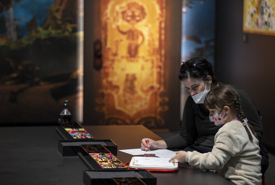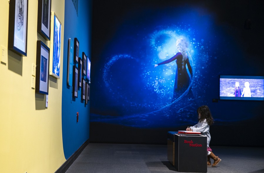 A child visits Disney: The Magic of Animation at Queensland Museum in Brisbane, Australia, on July 13, 2022. (Xinhua/Bai Xuefei)
