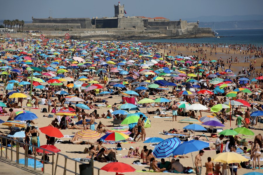 People cool off at the Carcavelos beach in Cascais, Portugal, July 9, 2022. (Photo by Pedro Fiuza/Xinhua)