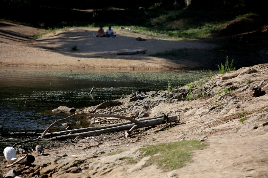 Photo taken on July 9, 2022 shows the low water level of the Blue Lagoon in Sintra, Portugal. (Photo by Pedro Fiuza/Xinhua)