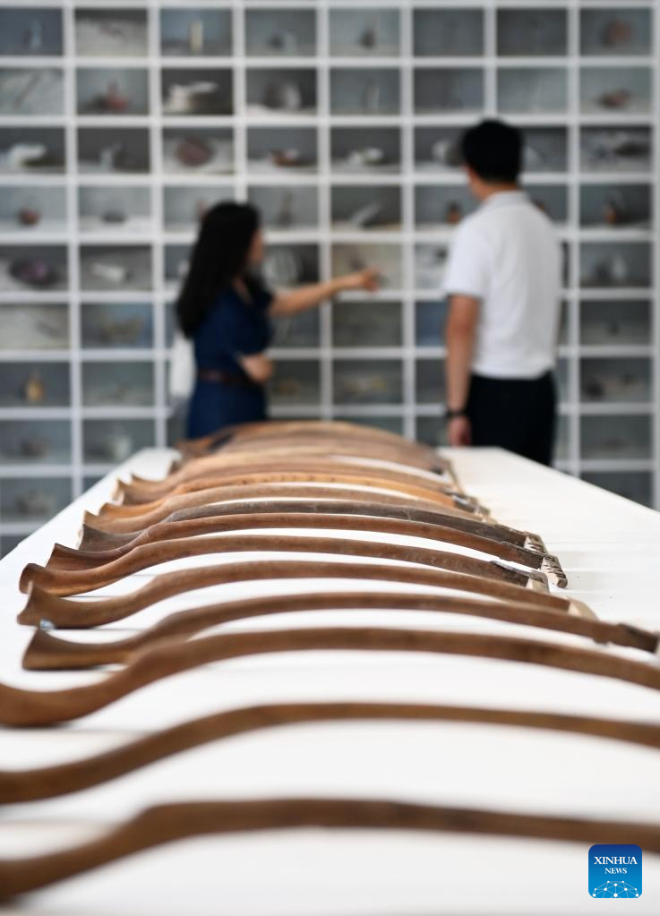 Pepole visit a village history exhibition in Caijiapo Village, Huyi District of Xi'an, northwest China's Shaanxi Province, on July 5, 2022. Faculty and students of the Xi'an Academy of Fine Arts have been working with artists to transform villages by practicing their profession. Such transformation, combining rural tradition with modern lifestyles, turns plain grain fields and farmhouses into places of interest that promote rural culture and rural tourism. (Xinhua/Li Yibo)