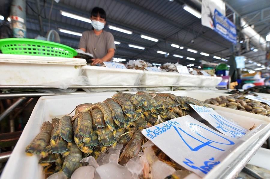 A vendor is seen at a food market in Bangkok, Thailand, March 30, 2022. (Xinhua/Rachen Sageamsak)