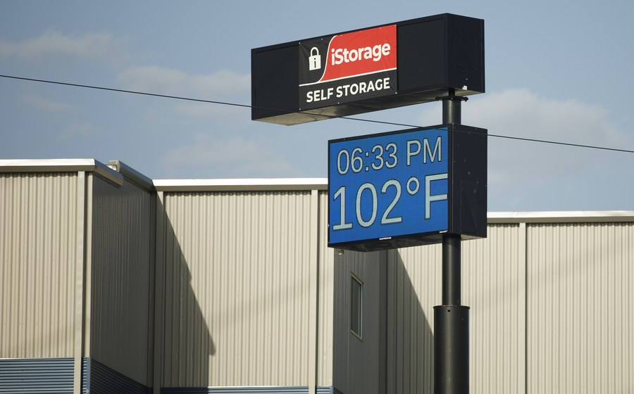 A sign reads the temperature at 102 degrees Fahrenheit in San Antonio, Texas, the United States, on July 18, 2022. (Photo by Nick Wagner/Xinhua)