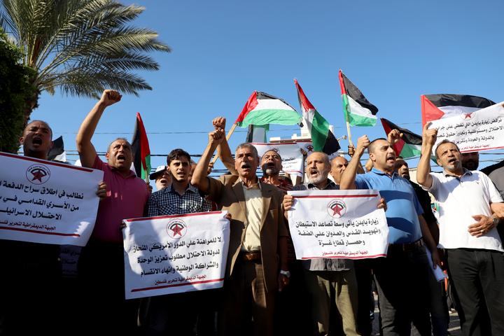 Palestinians demonstrated against the visit of the United States president Joe Biden, in Gaza City, on July 14, 2022. (Xinhua/Rizek Abdeljawad)