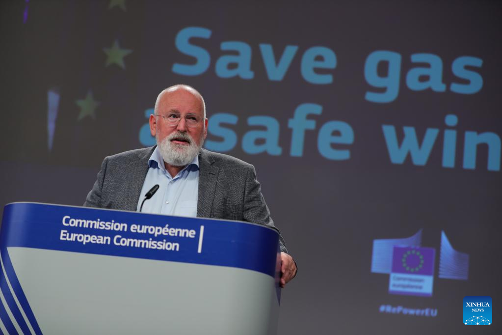 Frans Timmermans, executive vice president of the European Commission for the European Green Deal, speaks during a press conference in Brussels, Belgium, July 20, 2022. The European Commission on Wednesday unveiled proposals for member states to reduce their gas consumption by 15 percent from Aug. 1 till the end of March 2023.