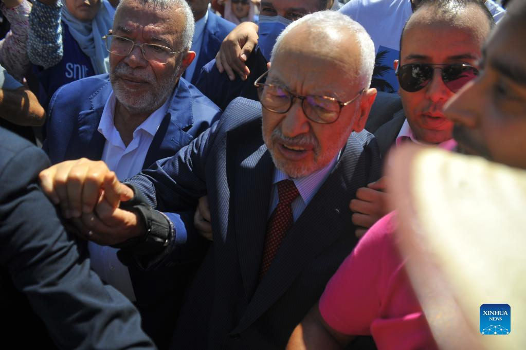 TUNIS, July 19 (Xinhua) -- Rached Ghannouchi, leader of Tunisia's Islamist Ennahda party, appeared on Tuesday before the court for the probe into his alleged money laundering and terrorist financing, the Tunis Afrique Presse (TAP) reported.