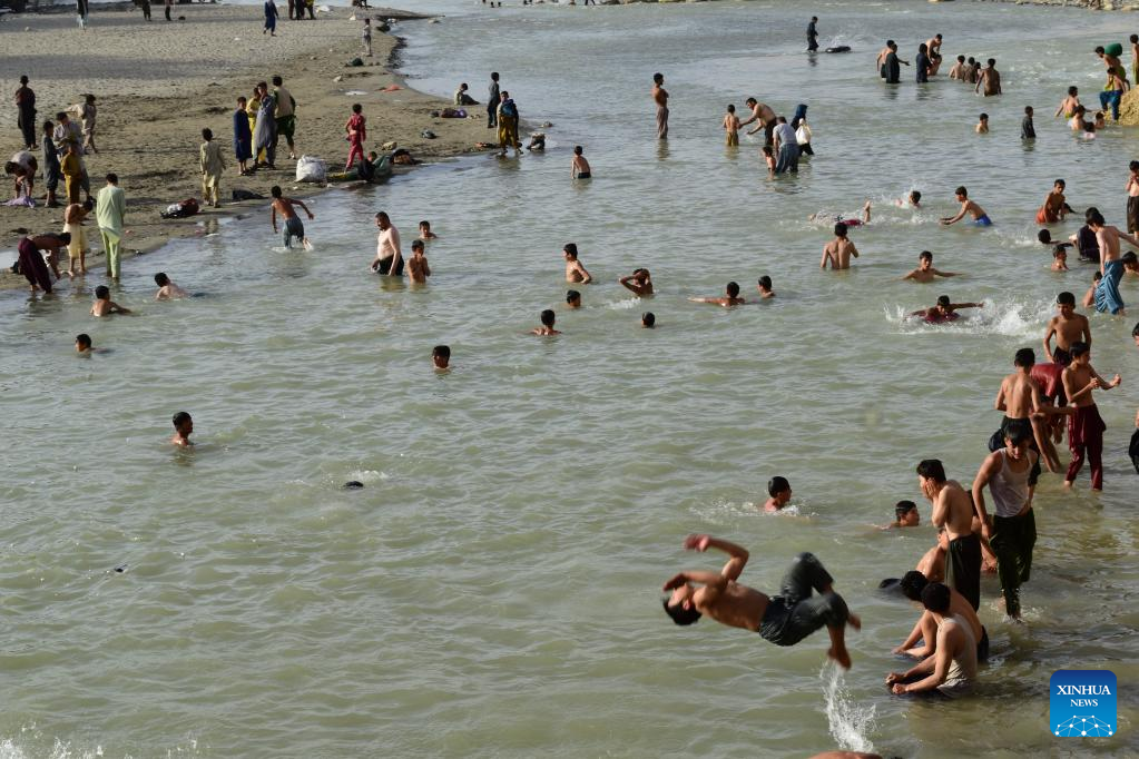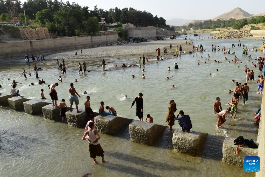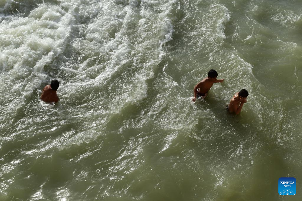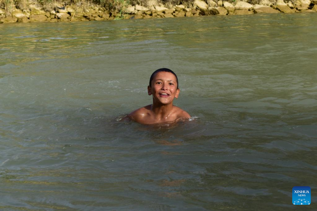 People swim in a lake to cool off on a hot summer day in Baghlan Province, Afghanistan, July 19, 2022. (Photo by Mihrabuddin Ibrahimi/Xinhua)