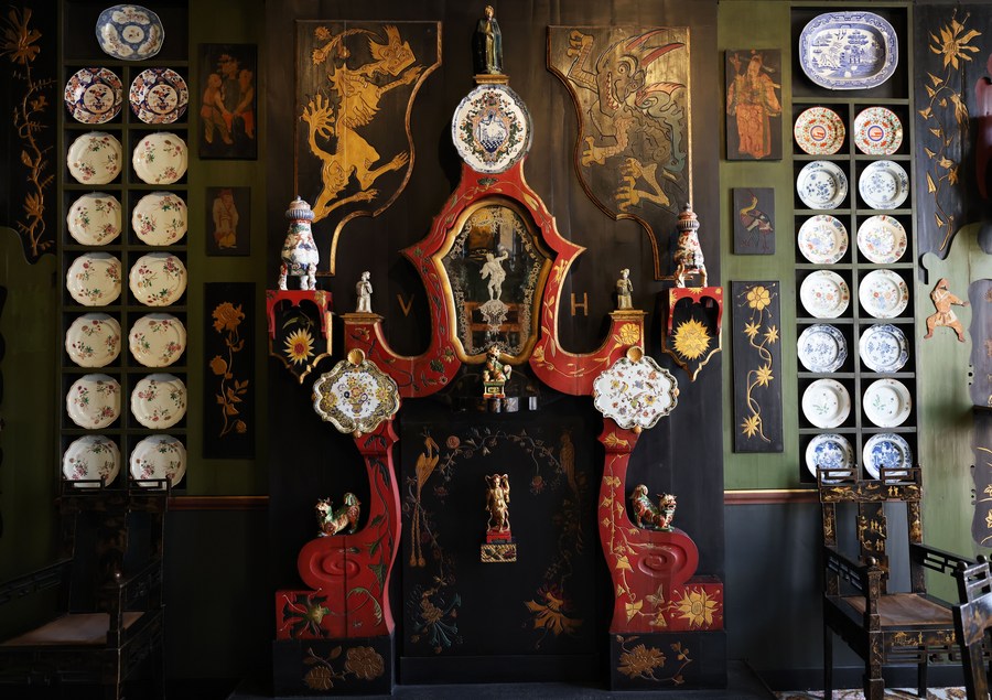 Decorations are seen at the Chinese Lounge at the apartment Victor Hugo rented from 1832 to 1848 in Place des Vosges in central Paris, France, June 14, 2022. (Xinhua/Gao Jing)