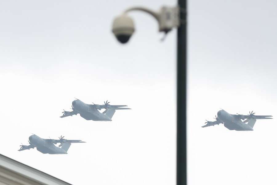 A400M transport aircraft take part in a parade during the Belgian National Day celebrations in Brussels, Belgium, on July 21, 2022. (Xinhua/Zheng Huansong)