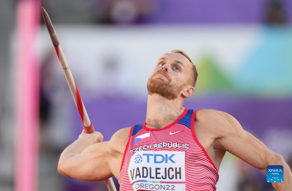 Jakub Vadlejch of the Czech Republic competes during the men's javalin throw final at the World Athletics Championships Oregon22 in Eugene, Oregon, the United States, July 23, 2022. (Xinhua/Wu Xiaoling)
