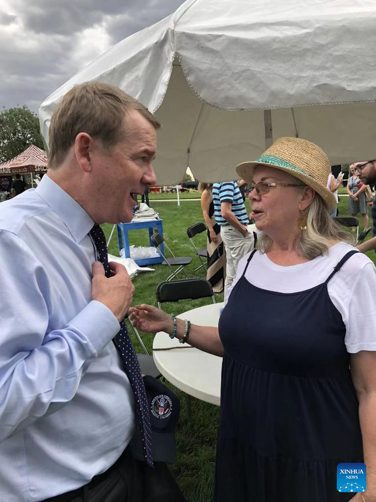 A gathering of several hundred, including two prominent politicians, was held in Colorado on July 23 to honor the fallen and first responders at the Batman movie massacre one decade ago. (Photo by Peter Mertz/Xinhua)