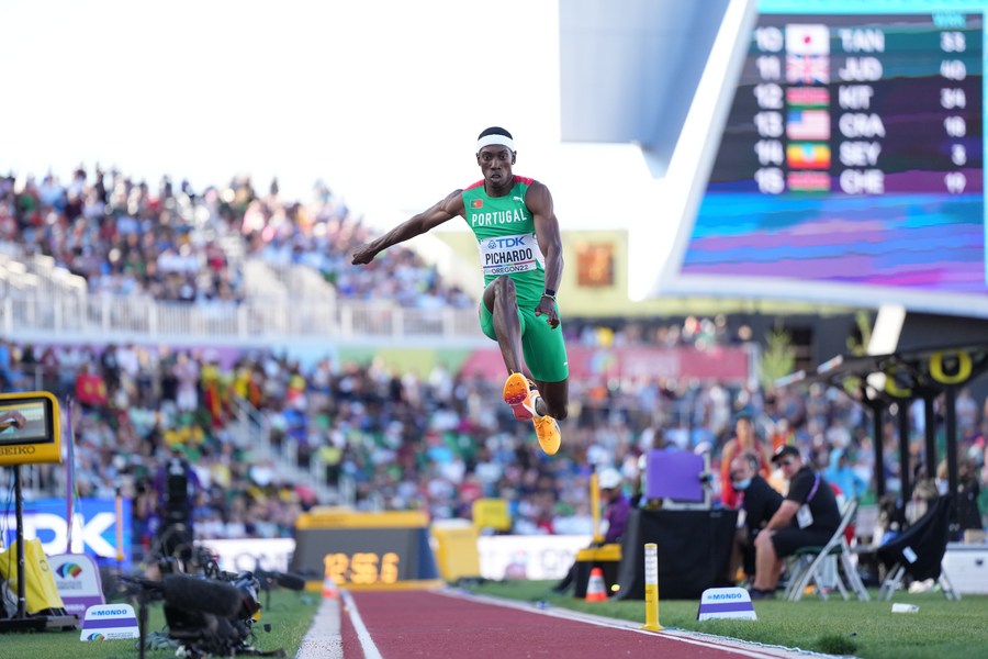 Pedro Pichardo of Portugal competes during the men's triple jump final at the World Athletics Championships Oregon22 in Eugene, Oregon, the United States, July 23, 2022. (Xinhua/Wu Xiaoling)