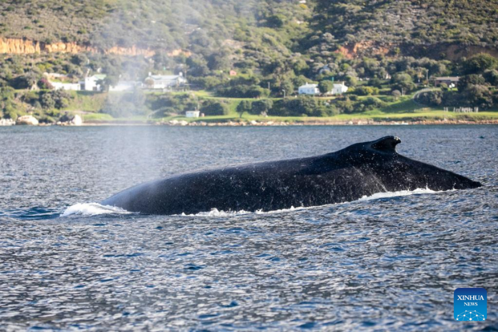 A humpback whale is seen in Cape Town, South Africa, on June 15, 2022. (Xinhua/Lyu Tianran)