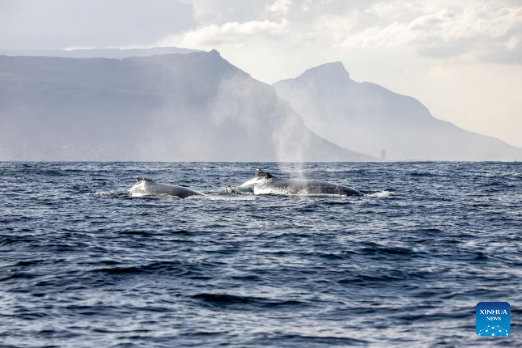 Humpback whales are seen in Cape Town, South Africa, on June 15, 2022. (Xinhua/Lyu Tianran)