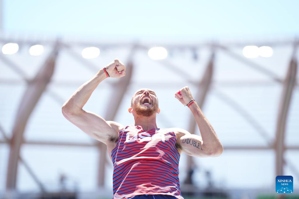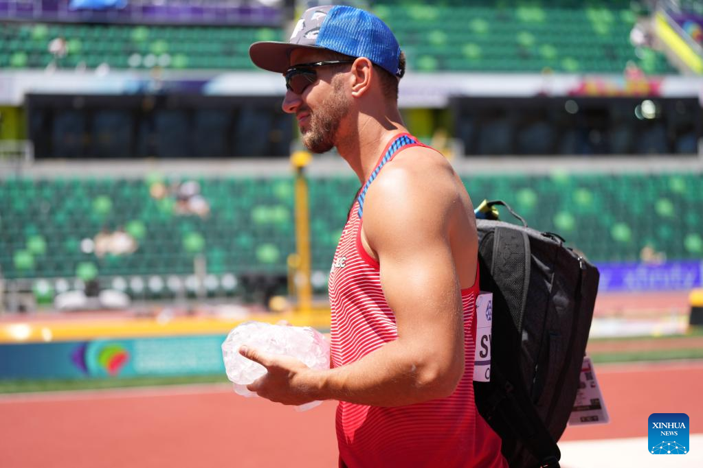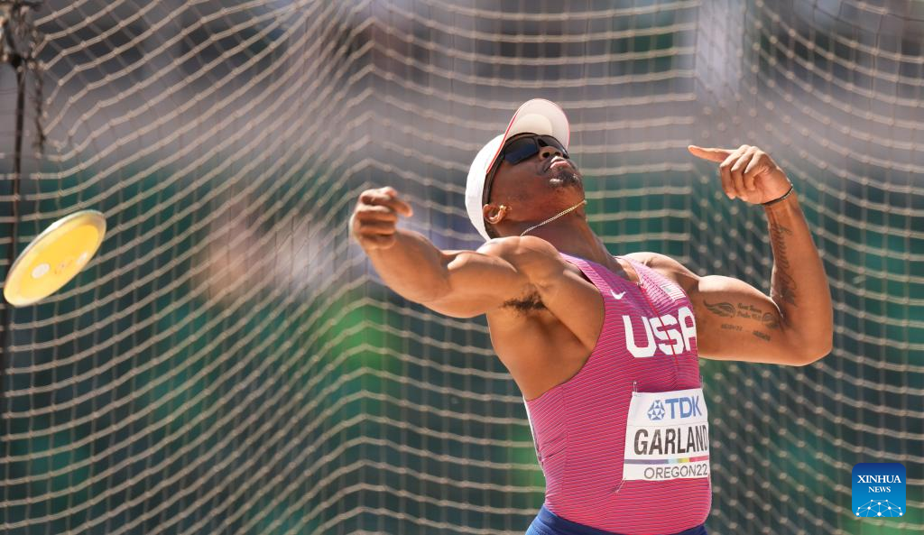 Kyle Garland of the United States competes during the discus throw of the Decathlon event at the World Athletics Championships Oregon22 in Eugene, Oregon, the United States, July 24, 2022. (Xinhua/Wu Xiaoling)