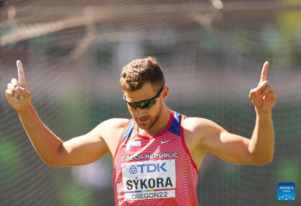 Jiri Sykora of the Czech Republic reacts during the discus throw of the Decathlon event at the World Athletics Championships Oregon22 in Eugene, Oregon, the United States, July 24, 2022. (Xinhua/Wu Xiaoling)